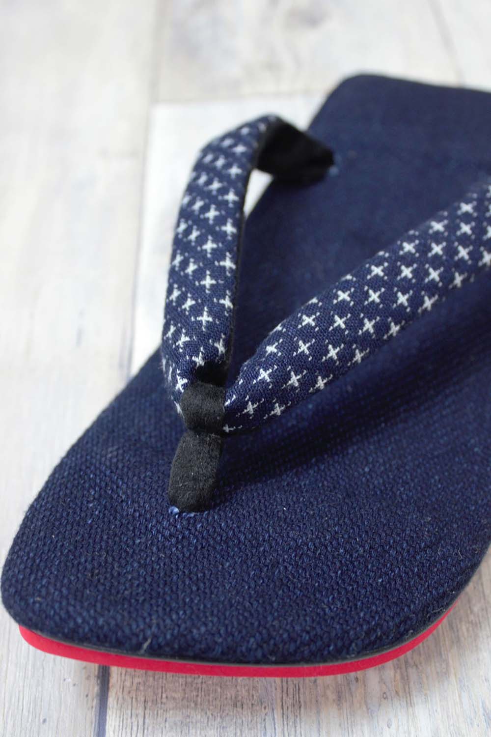 花緒・天板には岡山県井原市で織られたジャガードデニムを使用。