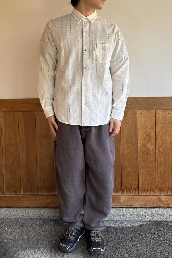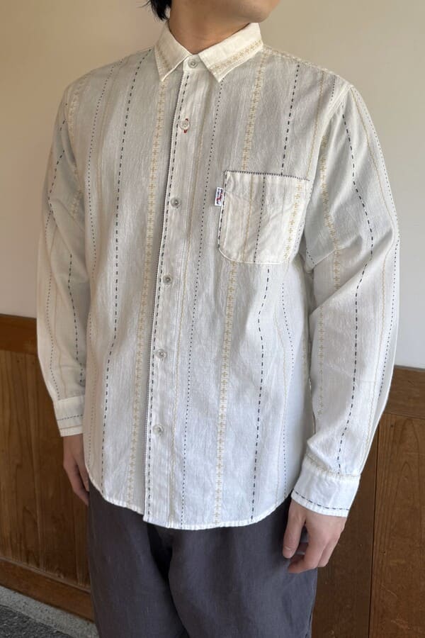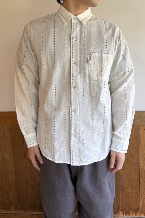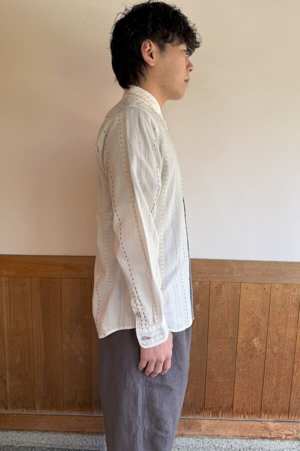 ほんのり立体感のあるドビークロス素材を使用し、台襟シャツをお作りしました。