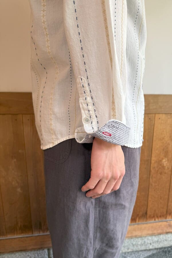 前立て裏、カフス裏にはギンガムチェックを忍ばせ、 見えない所までこだわった一着です。