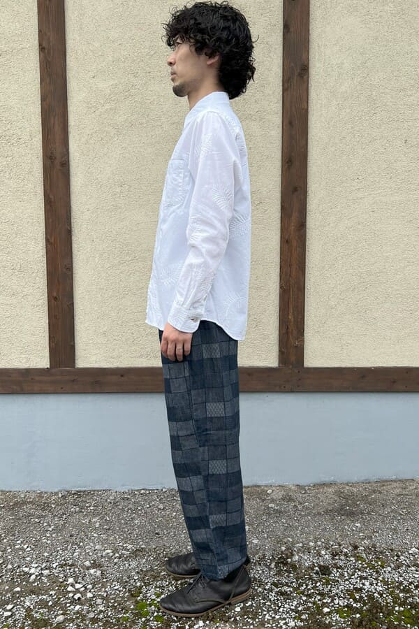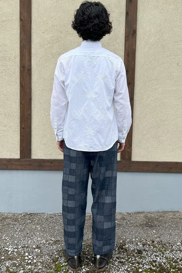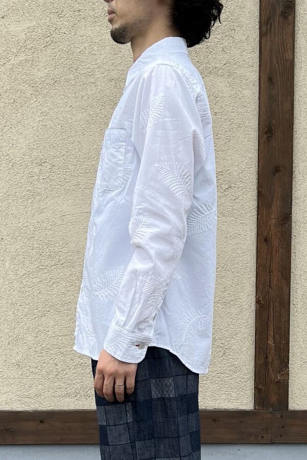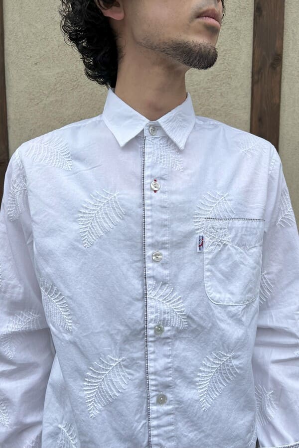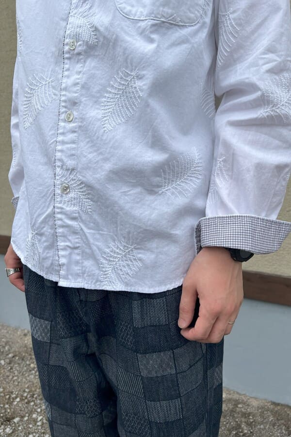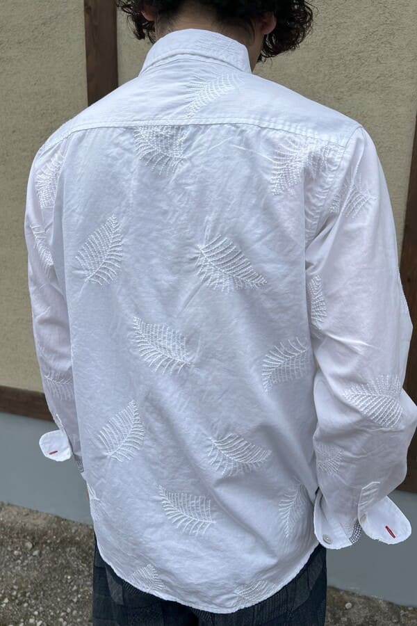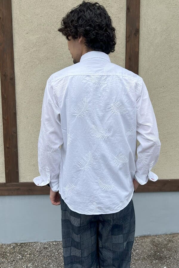 【BlueTrick】エンブロイダリー台衿SH リーフ白(メンズ)