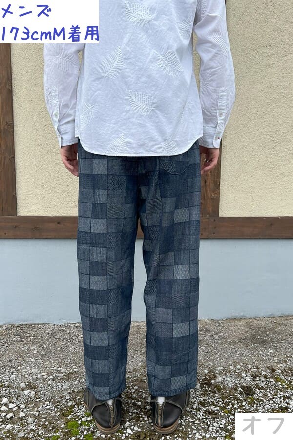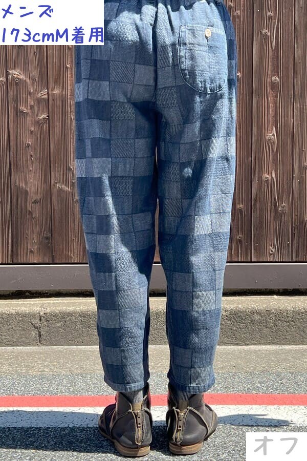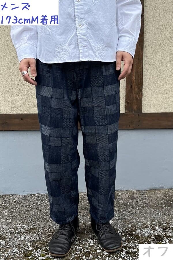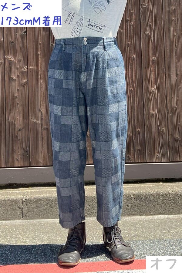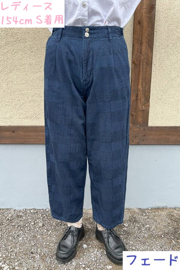 様々な織り模様をパネル調に織り込んだBlueTrickオリジナル素材でコクーンパンツをお作りしました。