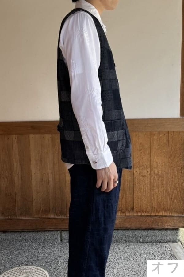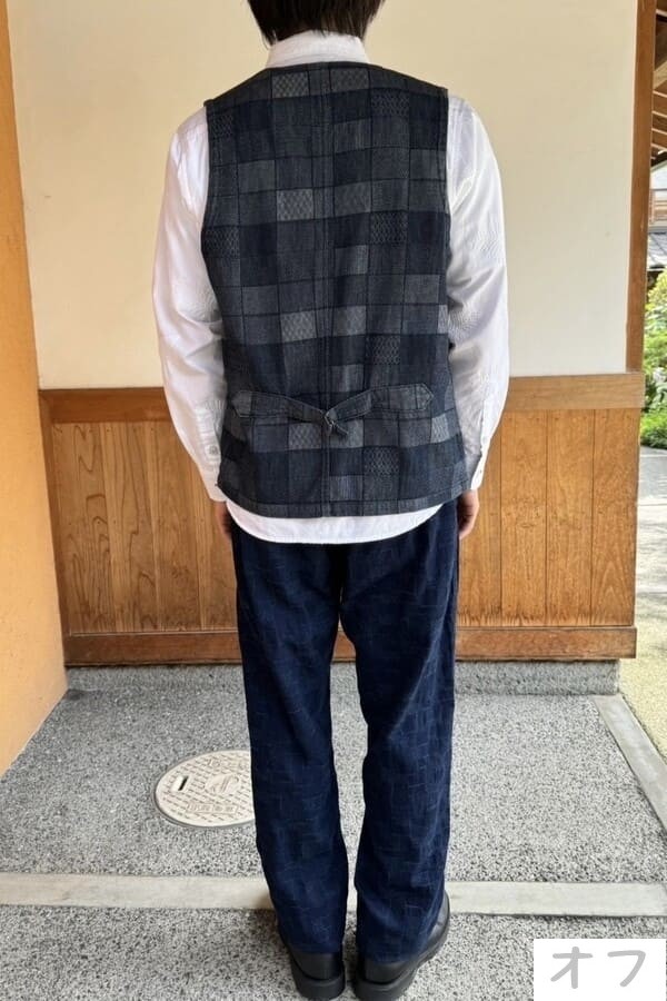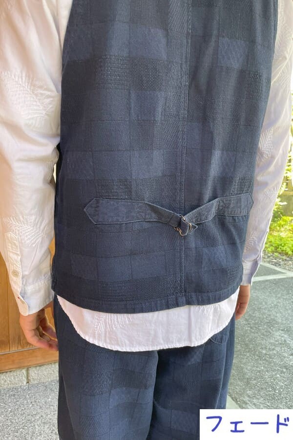 様々な織り模様をパネル調に織り込んだBlueTrickオリジナル素材で、メンズベストをお作りしました。