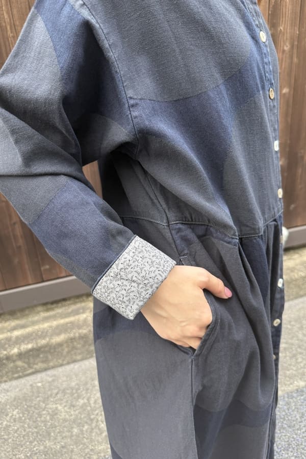 袖口、前立て裏にちらりとグレーの小花柄を使いディテールにもこだわり有り◎です。