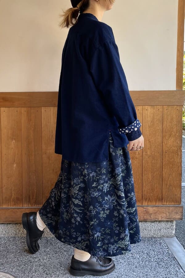 スカートやゆったりめのボトムとの相性も◎。1枚でブラウスとして、または中にインナーを入れ羽織りとして2wayでお楽しみ頂けます。
