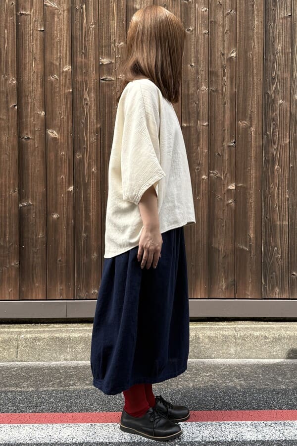 丸みのあるシルエットが特徴で、体型を拾いにくく、一枚でやさしい雰囲気に仕上がります◎。