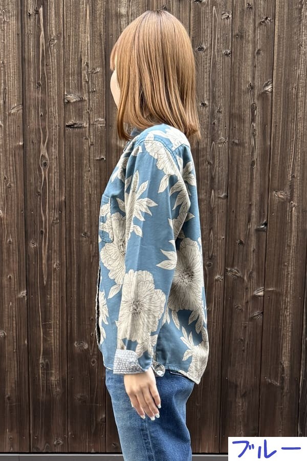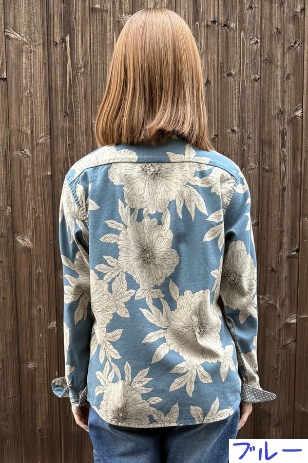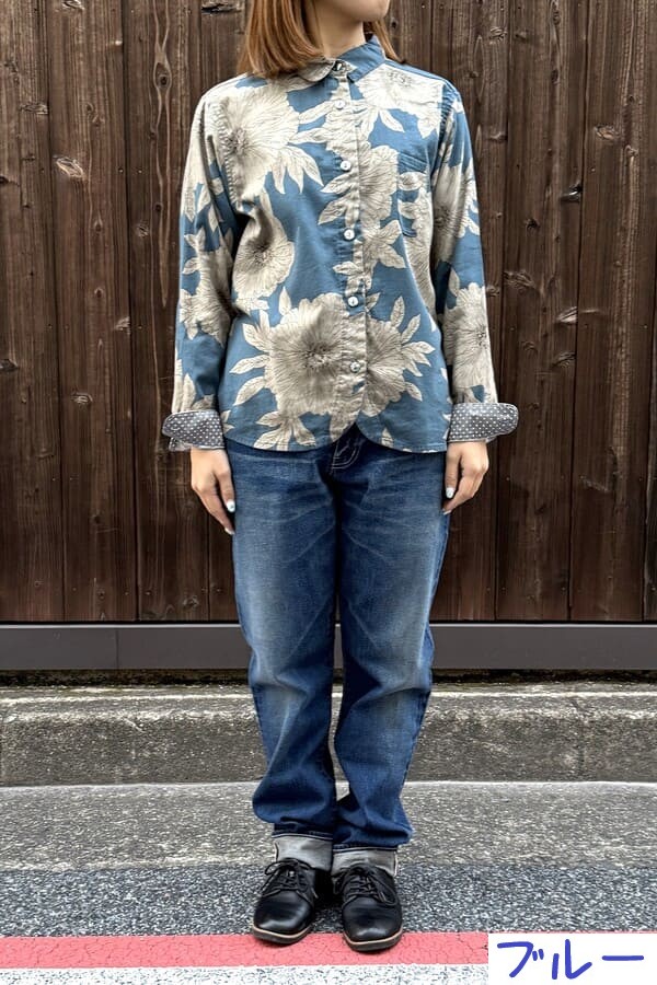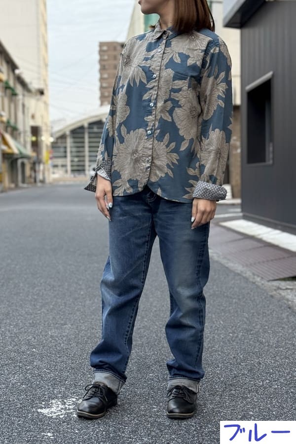 大きな花柄を大胆にプリントした生地で裾ラウンドブラウスをお作りしました。